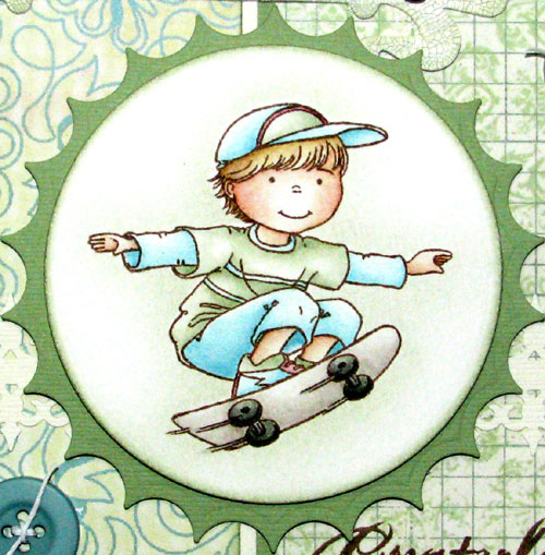 Det er ikke ofte jeg lager guttekort, men med et herlig søtt og kult stempel, og dødslekre friske papirer, var det denne gangen 'lett som en plett' :)